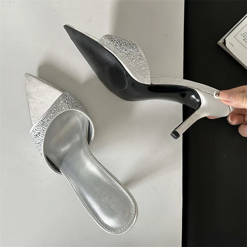 2024 New Summer Silk Women Slippers Fashion Thin Mules Beach Slides Shoes Low Heel Pumps