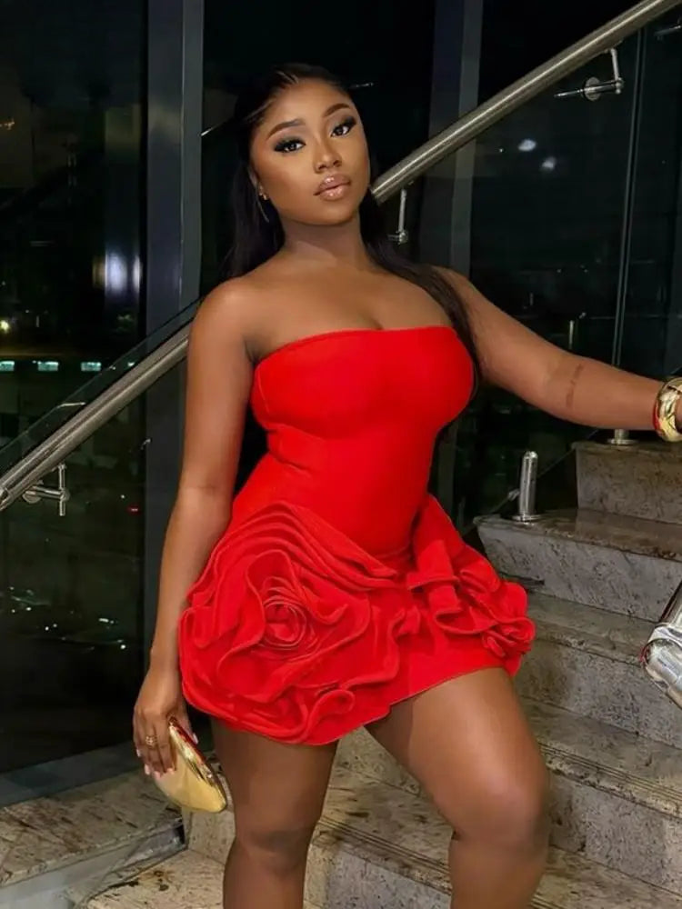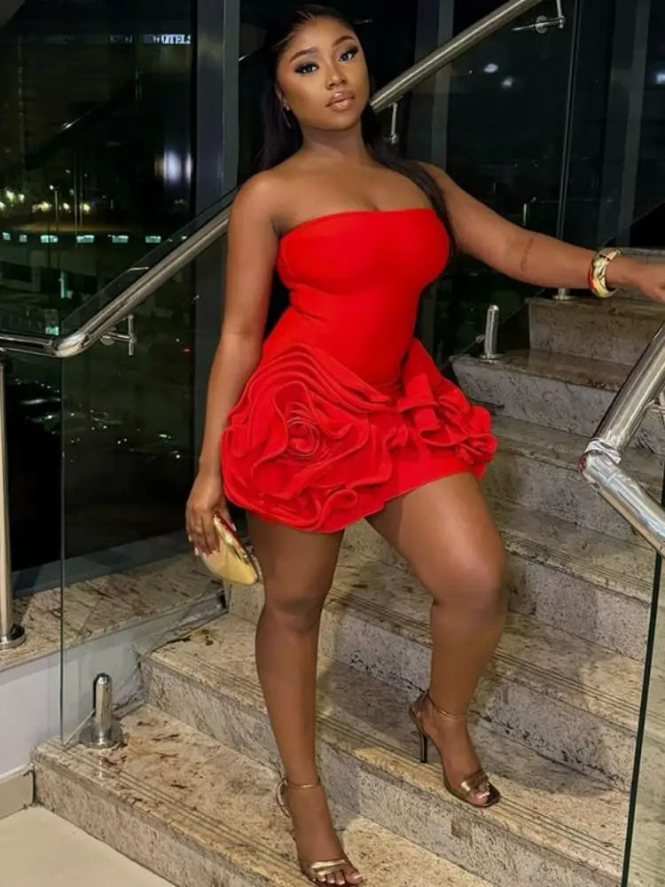 3D Flower Strapless Mini Party Dress