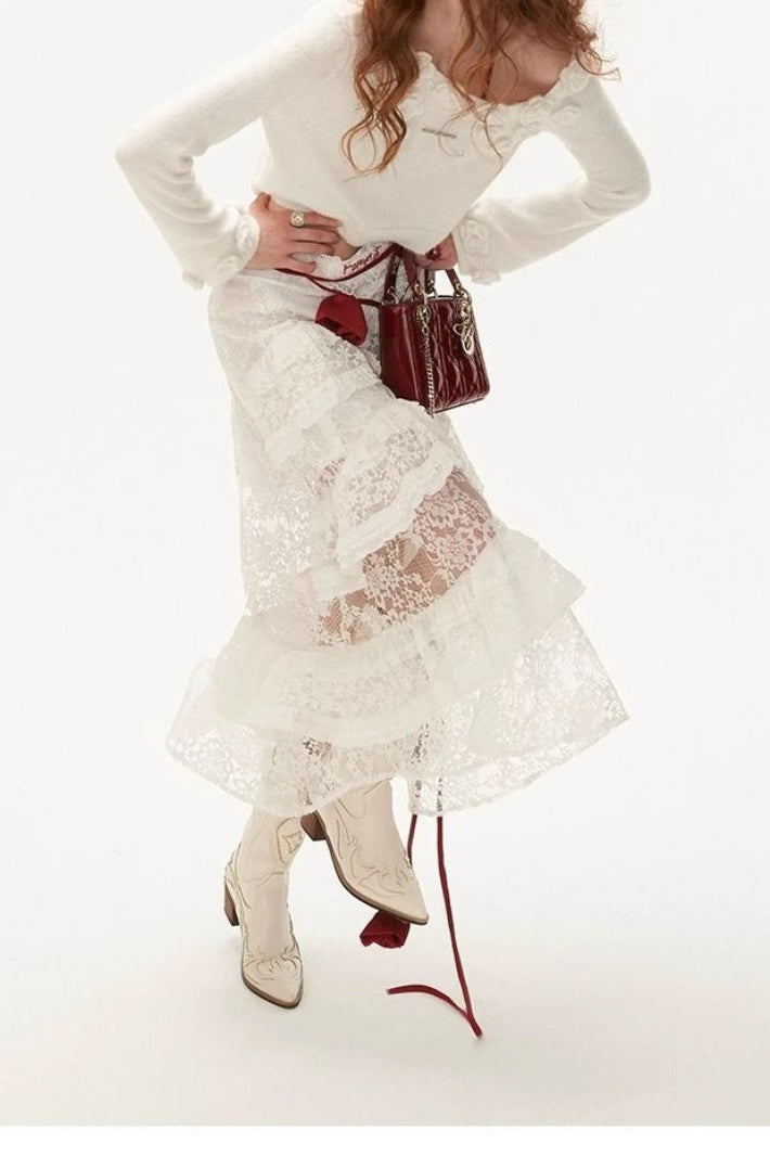 American Retro Sheer Lace Bodycon Skirt