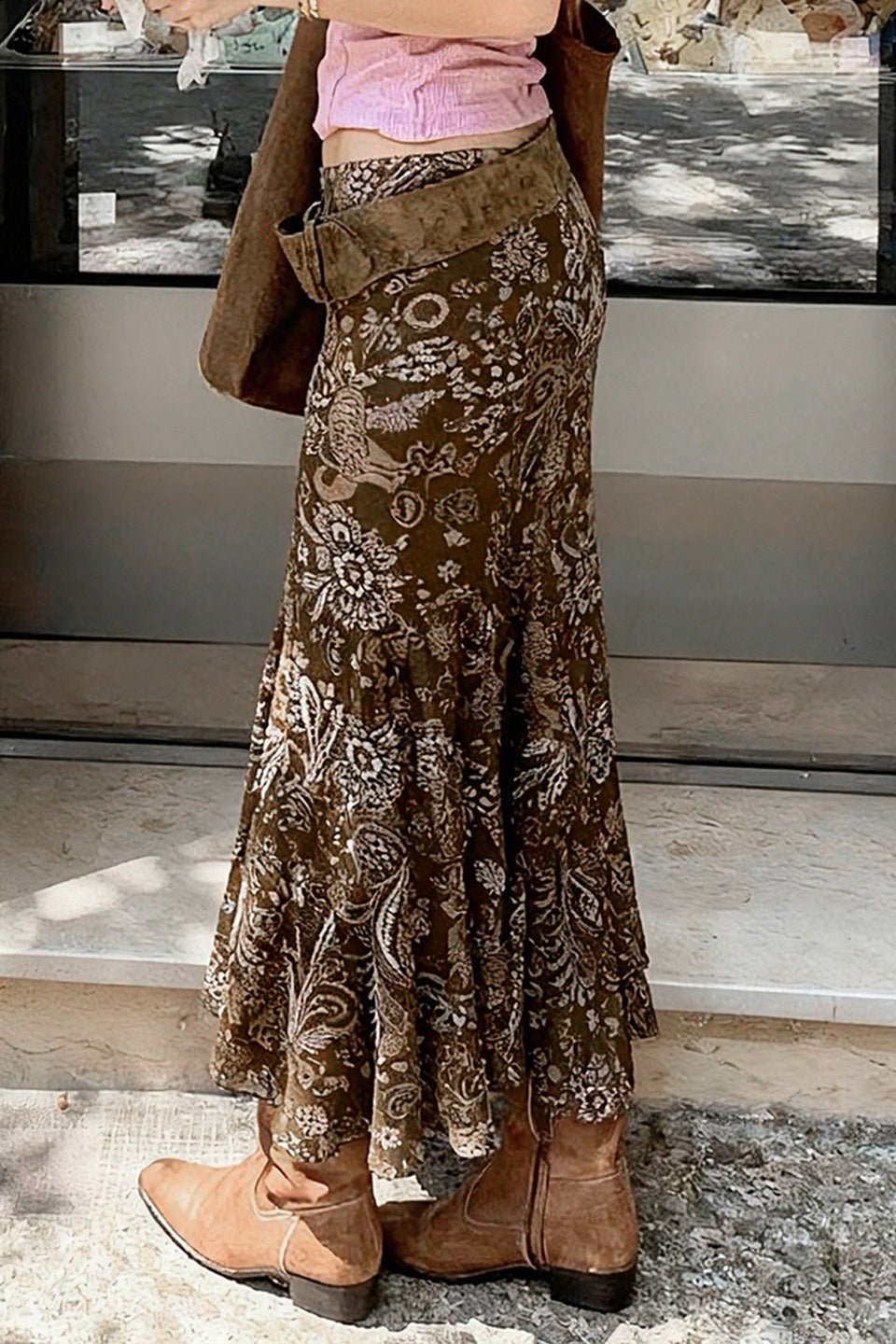 American Retro Sheer Panel Printed Skirt