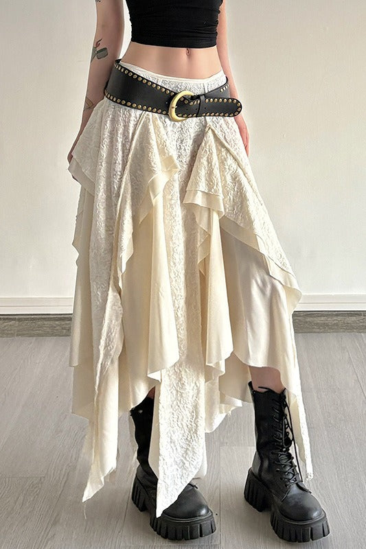 Asymmetric Wave Hem Tiered Midi Skirt
