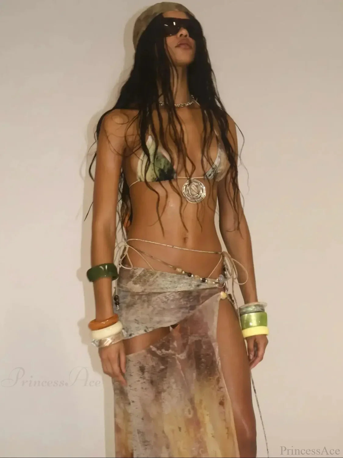 Print White Halter Skirt Three Piece Swimsuit